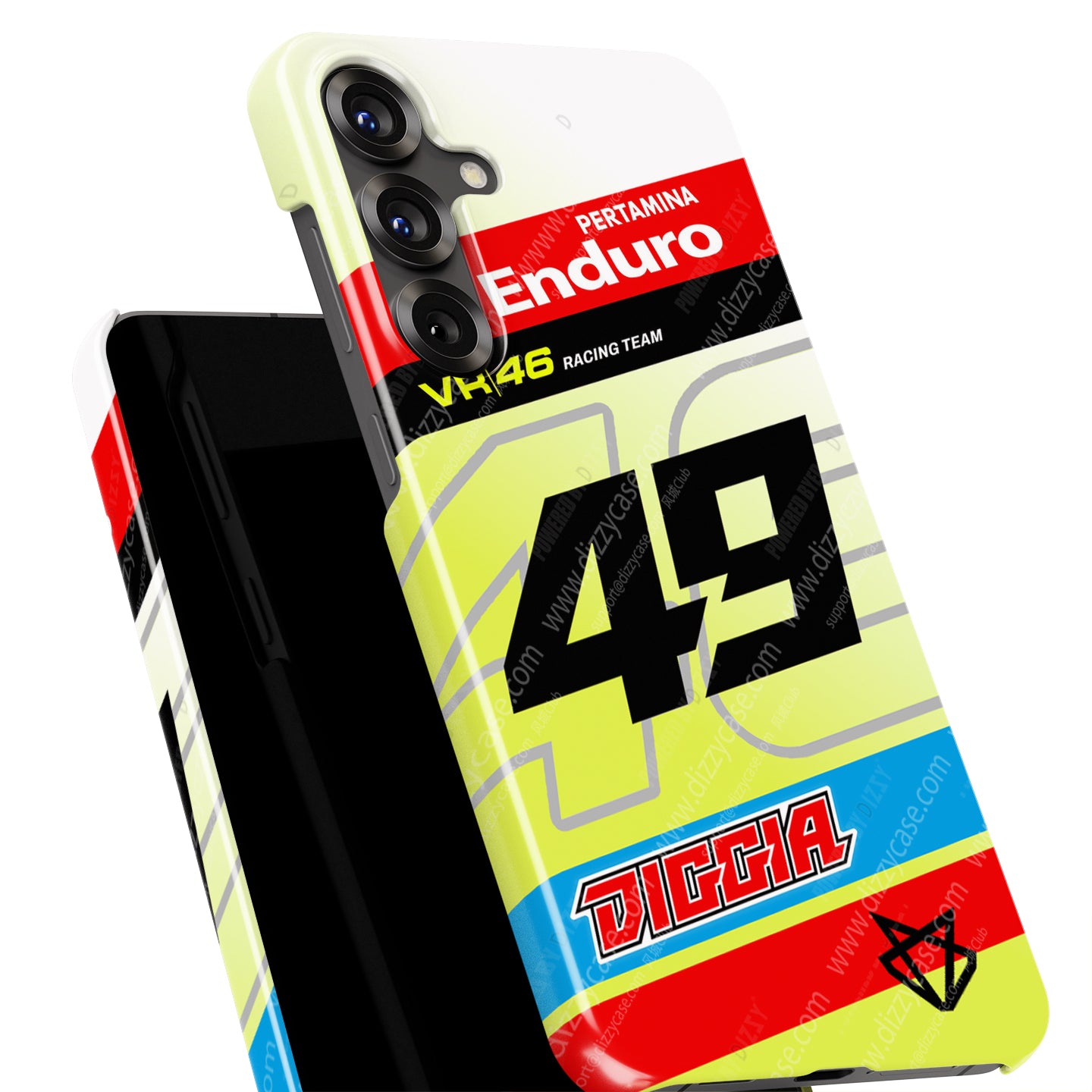 There is a romance to Italian motorcycle racing that doesn't exist anywhere else. It’s the blend of technical precision and flamboyant style. This phone case captures the essence of the 2025 season for the team born in Tavullia. Specifically, it honors the Number 49, Fabio Di Giannantonio, a rider who embodies the "never say die" attitude.