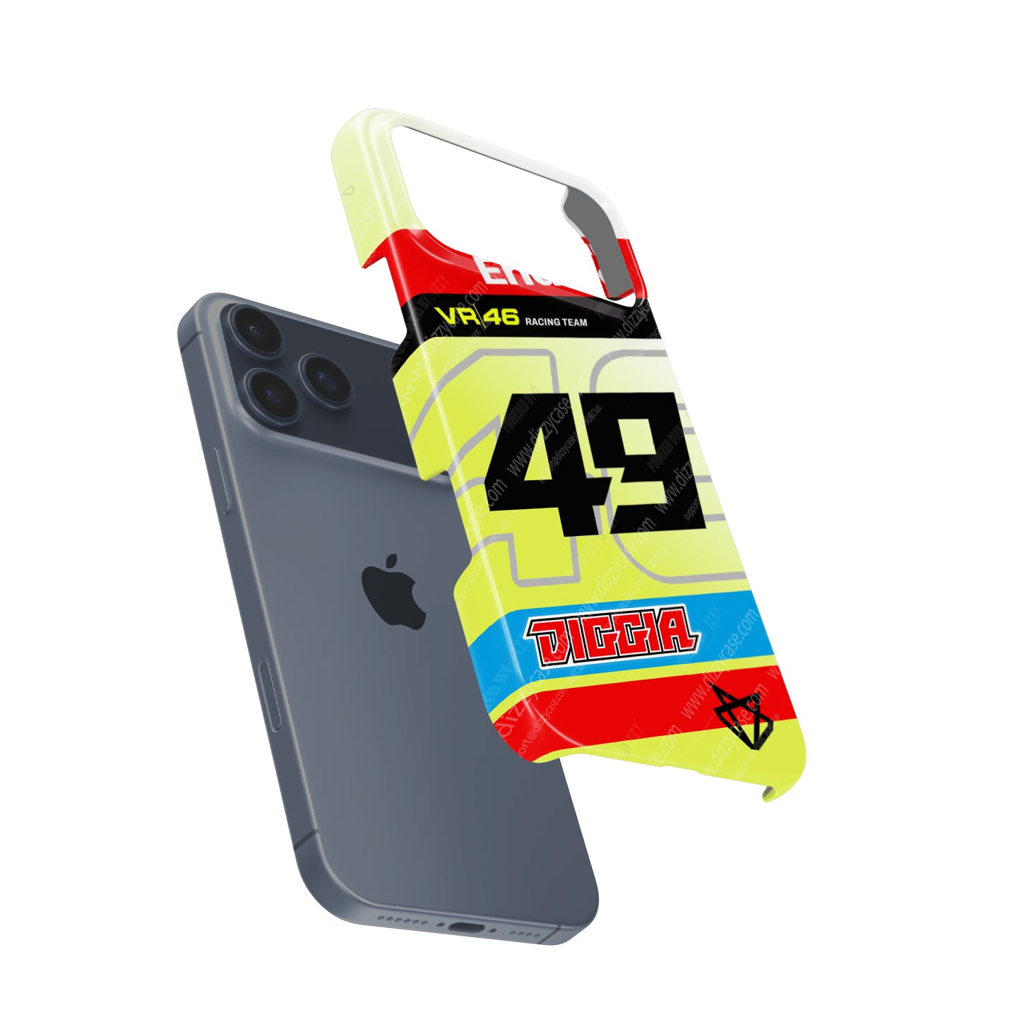 In the chaotic blur of the peloton at 350km/h, one color cuts through the noise: Fluorescent Yellow. It is the color of a legacy that started in Tavullia and conquered the world. This phone case is a celebration of that heritage, reimagined for the 2025 season and the rising star, Fabio "Diggia" Di Giannantonio.