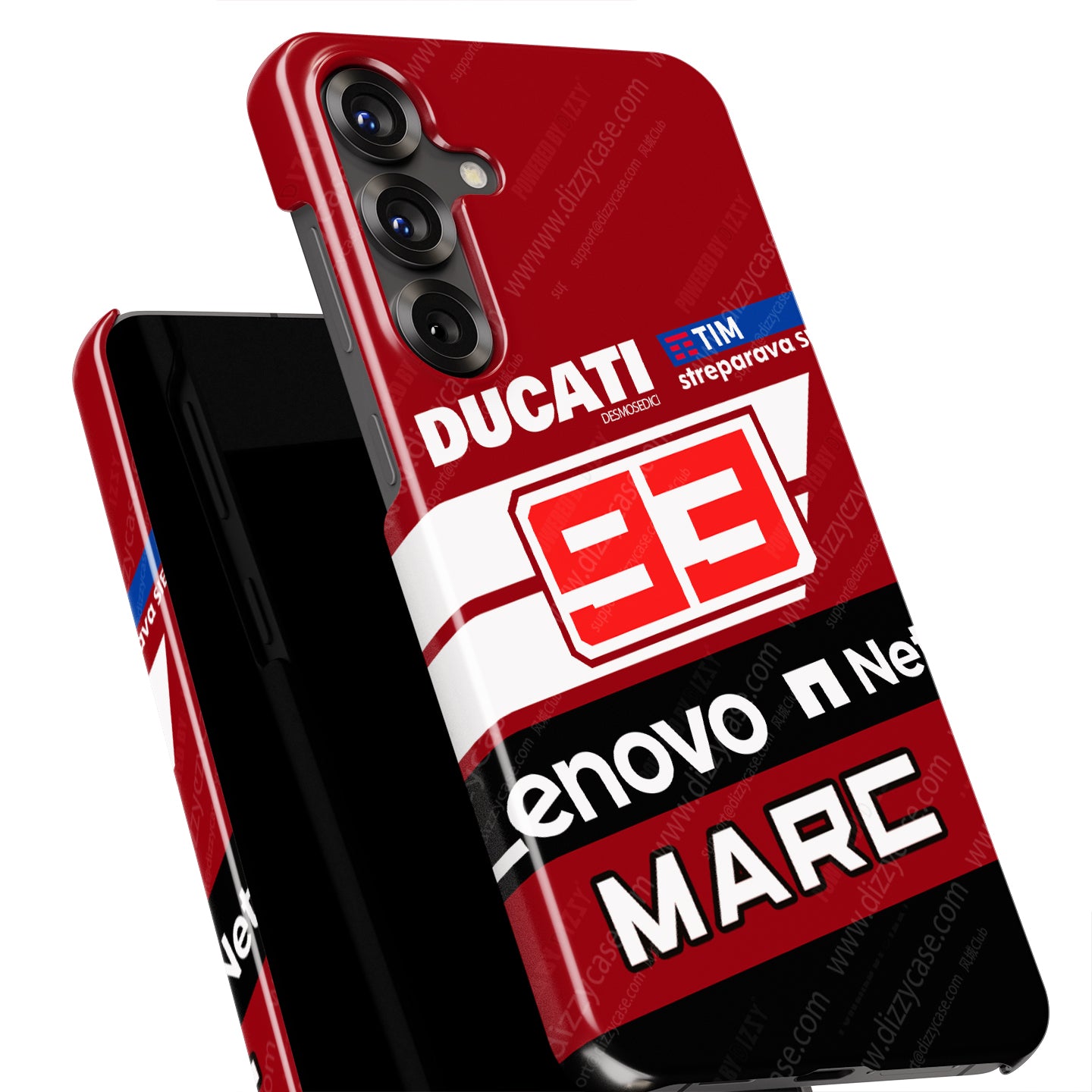 The design faithfully recreates the graphics of Marquez's race bike. The deep Ducati Red background is highlighted by the dynamic white stripes of the Lenovo sponsorship. The centerpiece is the race number 93 and the stylized "MARC" nameplate, ensuring everyone knows you support the greatest rider of the modern era. Whether you are upgrading to the new Samsung Galaxy S26 or keeping your S24, this case brings the spirit of the track to your pocket.