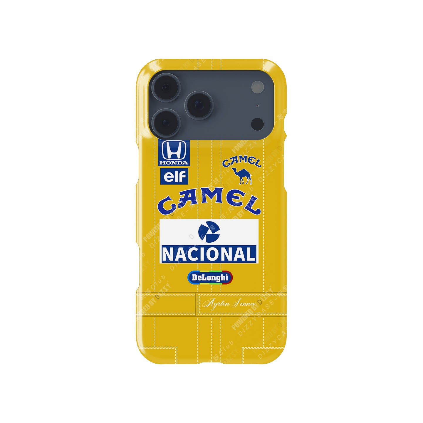 In 1987, Ayrton Senna took on the Formula 1 season in the Lotus 99T, a machine that would forever cement his name in racing history. Clad in the iconic yellow and blue of Lotus’ Camel livery, Senna’s 99T was a symbol of speed, precision, and pure heart, driven by a legend who left everything on the track. Now, you can carry a piece of that thrilling legacy with the Ayrton Senna Lotus 99T 1987 Livery phone case for Apple. More than just a protective cover, this case brings the spirit of Senna’s courage and legacy to your fingertips.