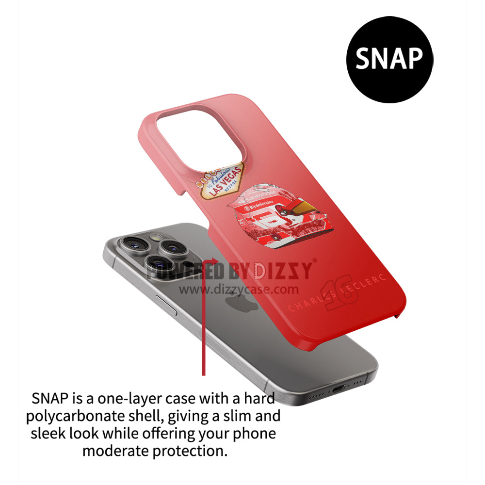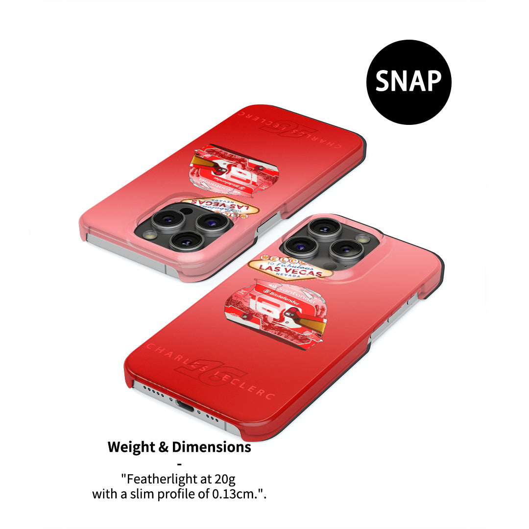 Inspired by the high-energy atmosphere of the race, the case features a bold, intricate design that mirrors the vibrant, high-octane environment of Las Vegas. With its sharp contrasts and high-gloss finish, this case brings Leclerc's helmet to life, offering F1 fans the chance to carry a piece of the iconic race wherever they go.