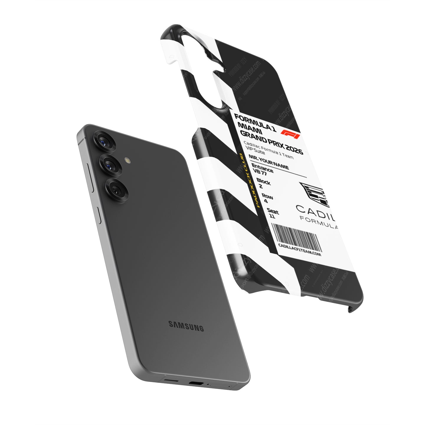 Step into the paddock for the ultimate home race. This custom Samsung Galaxy case is designed to look exactly like an exclusive Cadillac Formula 1 Team VIP Suite Pass for the glamorous 2026 Miami Grand Prix.