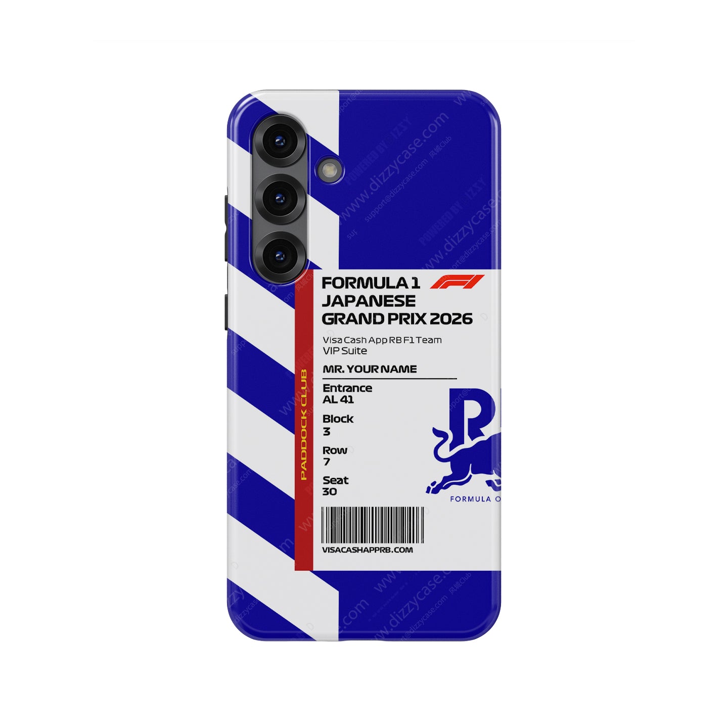 Design Layout Disclaimer: Due to the varying camera modules of different Galaxy models, the exact placement of the printed ticket pattern may vary slightly. Mockup images are for reference only. Disclaimer: This is an independently created custom artistic tribute and is not an official product of, nor affiliated with, Visa Cash App RB or Formula 1.
