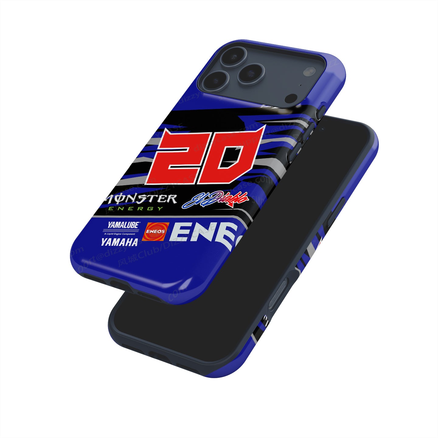 Experience the thrill of MotoGP and celebrate Fabio Quartararo's achievements with the Fabio Quartararo #FQ20 Yamaha MotoGP 2024 Livery Phone Case by DIZZY. Ideal for any MotoGP fan, this case combines protection, style, and the exhilarating spirit of racing.