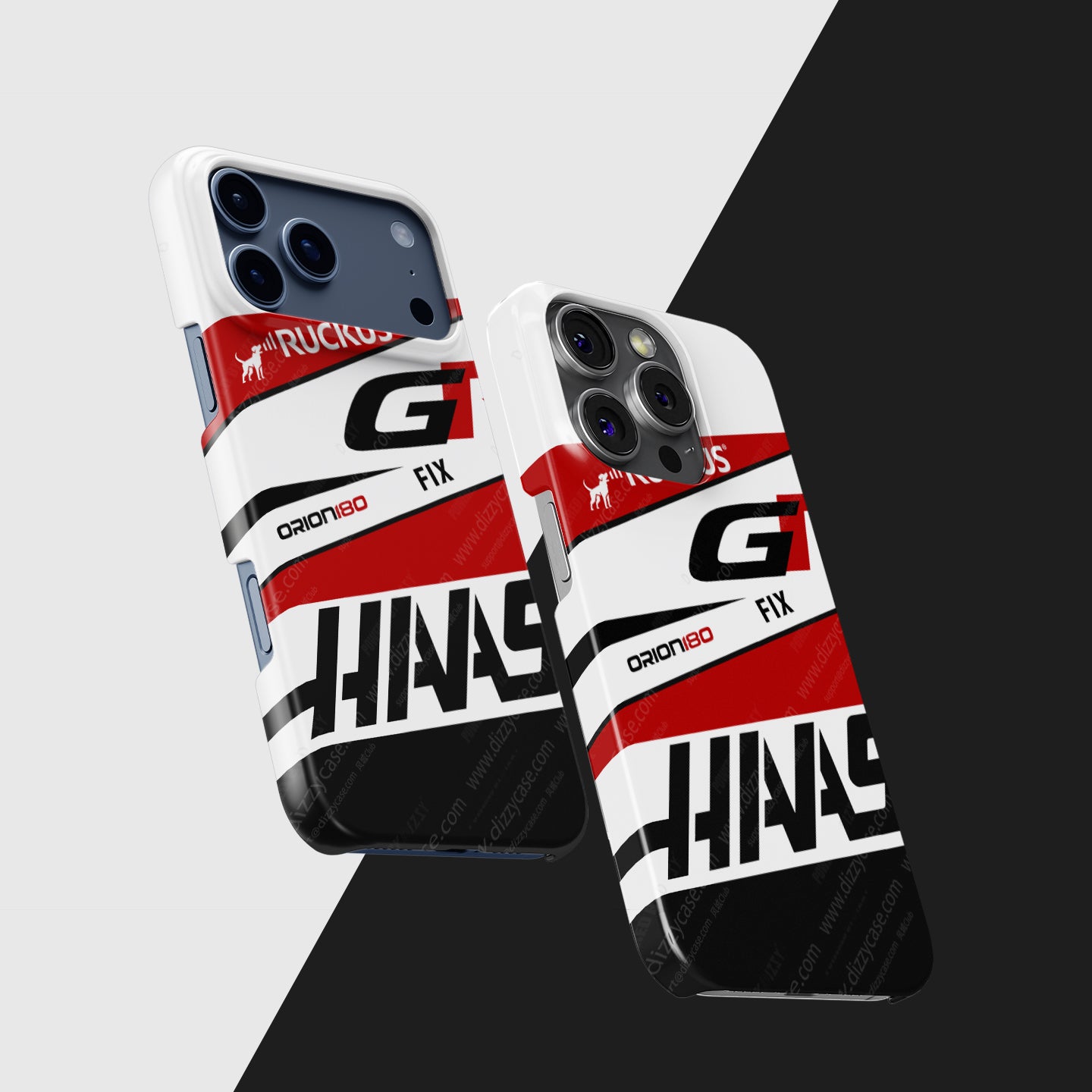 Based on the stunning 2026 livery, this design ditches the old monochrome for a blindingly fast White, Red, and Black aesthetic. The massive "HAAS" lettering dominates the side, flanked by the "GR" logo that signals the return of Japanese engineering prowess to the team. With details like the RUCKUS and Orion180 sponsor logos, this case is for the fan who believes that the American team is ready to fight for podiums.