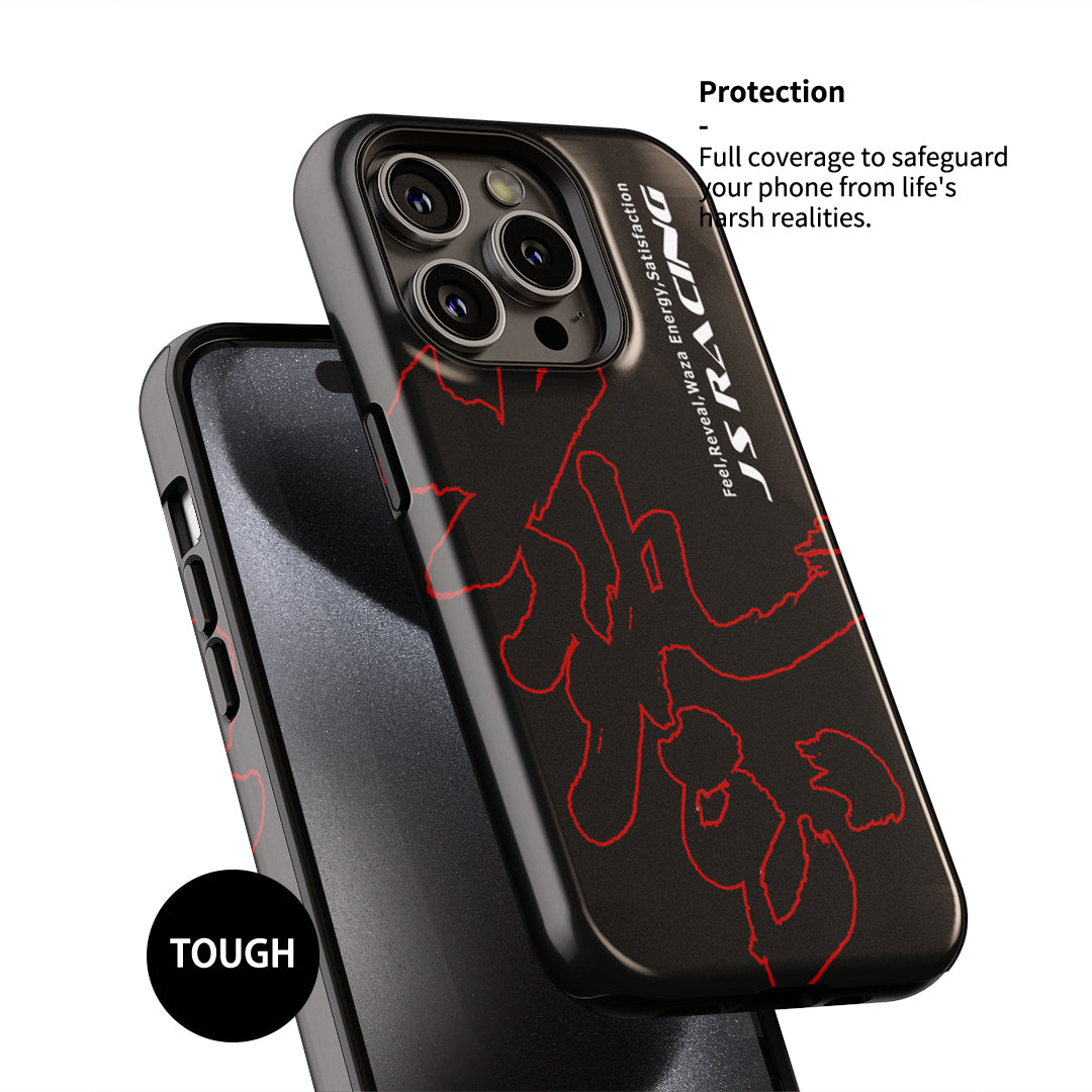 Looking for style, protection, or both? We’ve got options! The Snap Case is perfect for anyone who prefers a slim, minimalist look without compromising on safety. Made from high-quality polycarbonate, it guards your phone from everyday bumps and scratches, all while maintaining a sleek, lightweight profile that fits comfortably in your pocket. Need more protection? The Tough Case takes defense up a notch with a dual-layer design—featuring a shock-absorbing silicone inner layer and a durable polycarbonate outer shell. Built to withstand drops and impacts, it keeps your phone safe while showcasing that iconic J's Racing design. No matter which case you choose, your phone is in good hands with premium style to match.