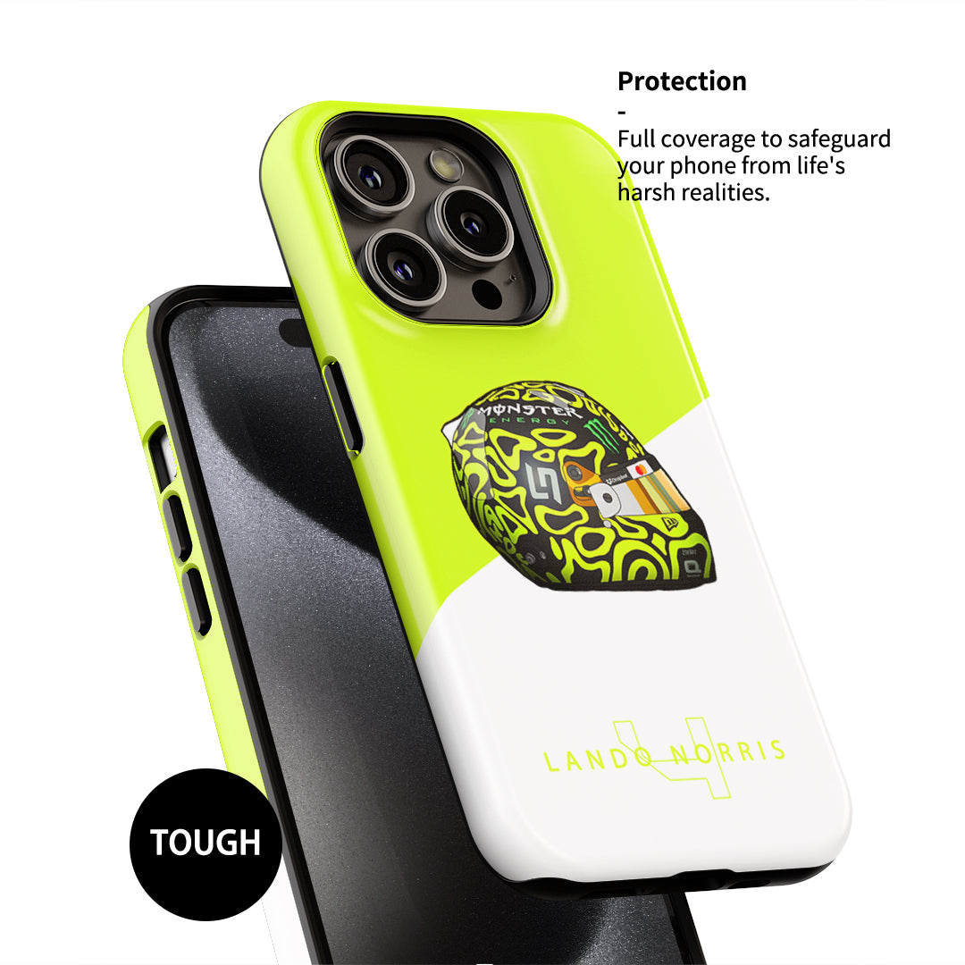 If you’re seeking something with extra protection, the Tough Case is your ideal choice. This case features a double-layer defense system with a shock-absorbing silicone inner layer and a durable polycarbonate outer shell. Your phone stays safe from drops, impacts, and scratches, while the stunning 3D-printed design ensures your case looks as good as it feels. With the Lando Norris Las Vegas 2024 helmet design, you’ll not only protect your phone but also carry the spirit of Formula 1 with you wherever you go.