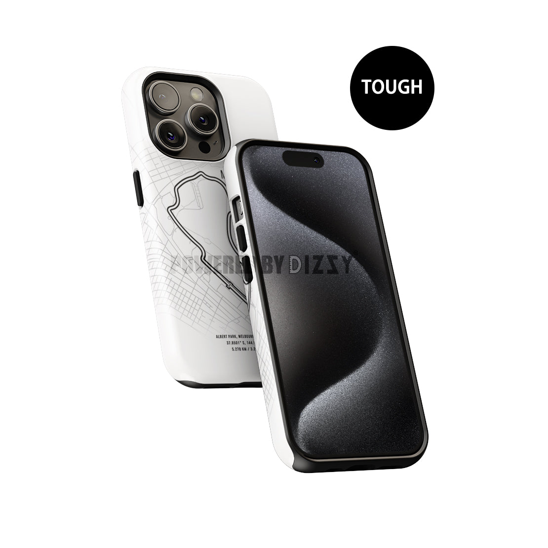 - Tough Case: If you need more rugged protection, the Tough Case is built to take on the toughest challenges. With its dual-layer system of silicone and polycarbonate, this case ensures your Samsung is safe from drops, bumps, and everyday wear. The 3D-printed Melbourne track map wraps around the case, adding a striking racing aesthetic to your device.