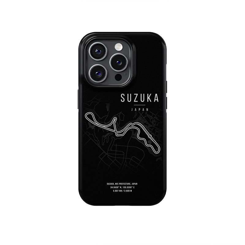 - Tough Case: If you're looking for maximum protection, the Suzuka F1 Tough Case is built to handle it all. With a shock-absorbing silicone inner layer and a durable polycarbonate outer shell, it ensures your phone survives every drop and impact. The dynamic Suzuka track map is 3D-printed across the entire case, offering stunning visuals and sturdy defense for your device.