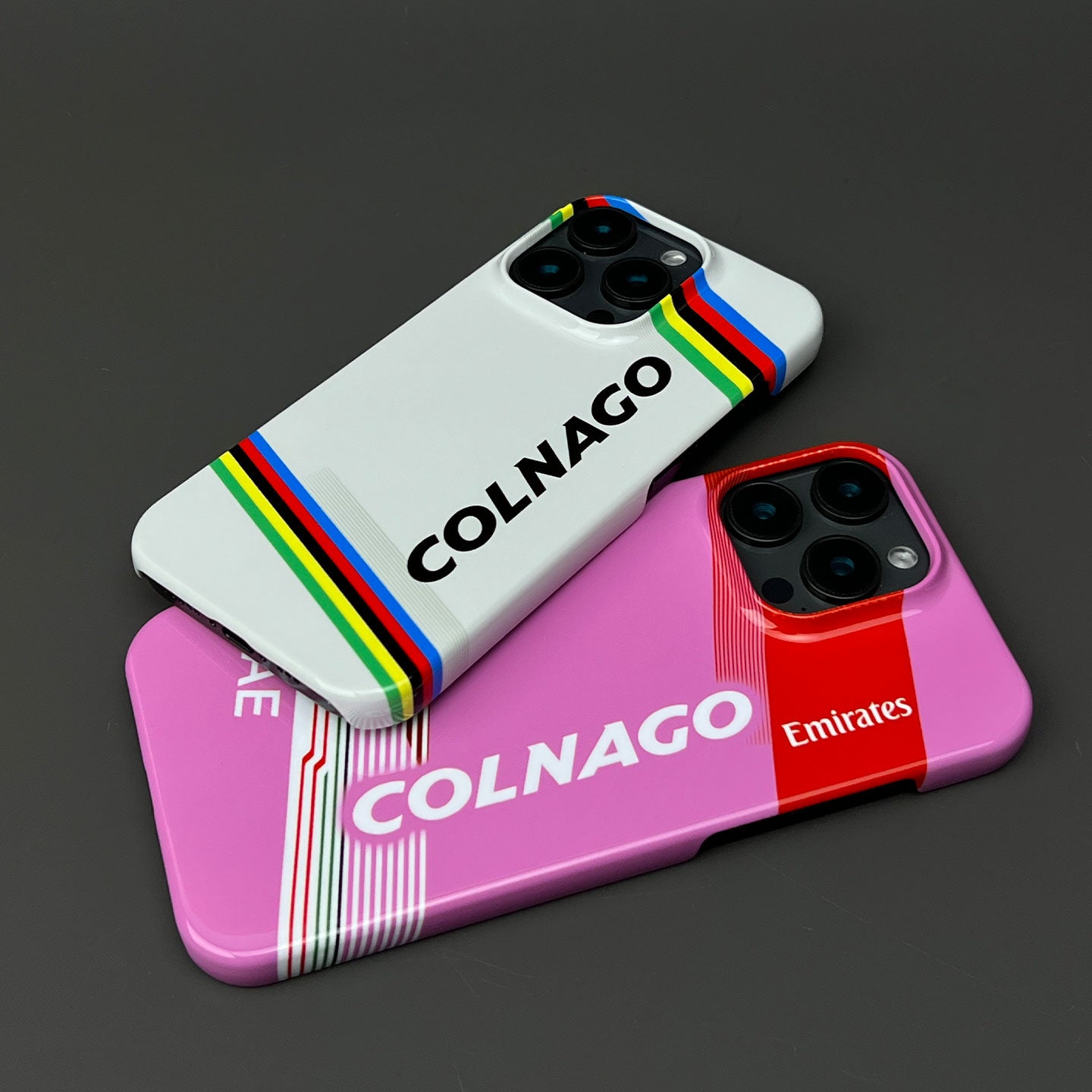 This phone case draws inspiration from the pink Colnago V4Rs bike Tadej Pogačar rode to win the 2024 Giro d’Italia. The pink colorway reflects the prestigious Maglia Rosa, awarded to the general classification leader, while the sleek graphic lines reference mountain stages and the fight for every second.