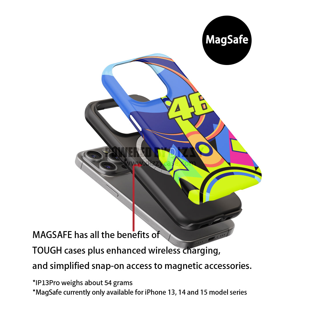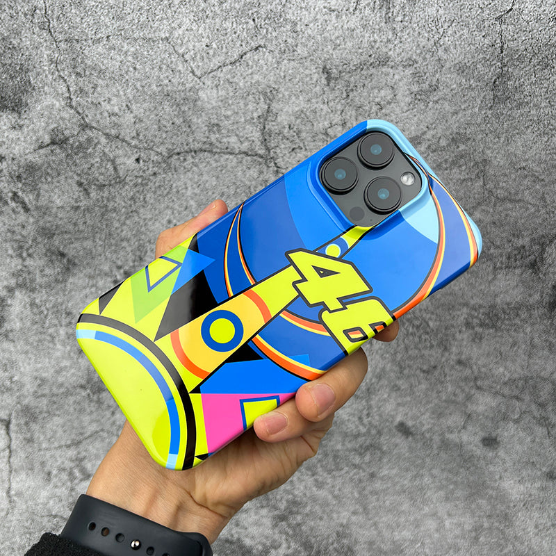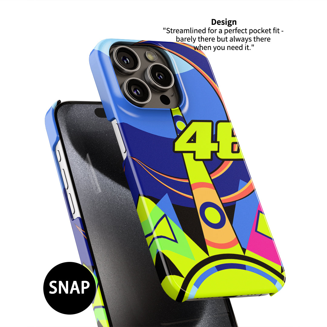 For those who want their phone to stay as sleek and swift as Rossi on the track, the Snap Case is the perfect fit. Slim, stylish, and practical, it wraps your phone in a high-quality polycarbonate shell, offering everyday protection without adding bulk. The vivid "Sun and Moon" design stretches over both the back and sides of the case, showcasing Rossi's legendary helmet design in all its glory. This case is a tribute to those who love the thrill of racing, capturing the essence of MotoGP in a phone case that’s as much a work of art as it is a piece of racing heritage.