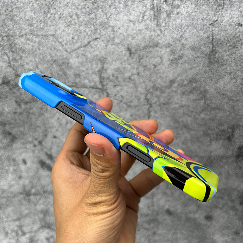 For those who demand the utmost in protection, the Tough Case is built to withstand the intense forces of the racing world. Featuring a double-layer defense with a shock-absorbing silicone inner layer and a durable polycarbonate outer shell, this case ensures your phone stays safe, no matter what comes its way. Whether you’re celebrating a Rossi victory or braving the chaos of daily life, the Tough Case offers superior protection. The stunning "Sun and Moon" design is 3D-printed, covering every inch of the case with bold, racing-inspired detail, making sure your phone looks as good as it feels safe.