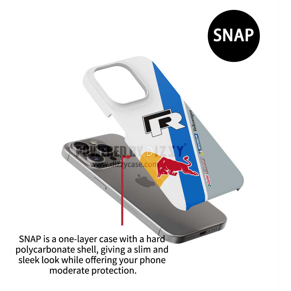 Celebrate the iconic look of the 2013 Volkswagen Polo R WRC with this precision-designed phone case. Featuring the unmistakable white-blue-silver livery with the RB and Michelin details, this case captures the essence of one of the most dominant rally cars of the decade.
