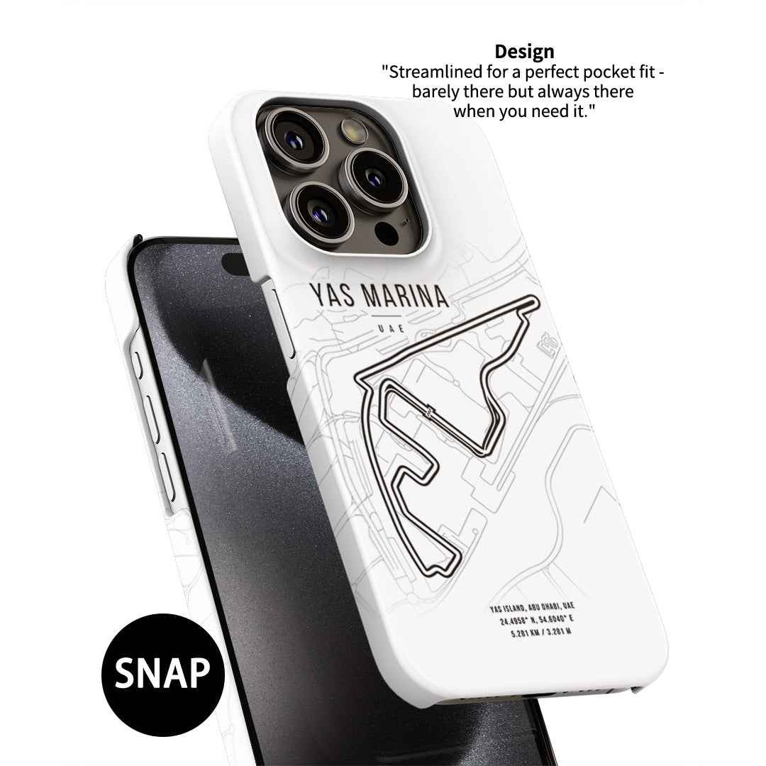 - Snap Case: The Yas Marina F1 Snap Case for Huawei is perfect for fans who want sleek, everyday protection. The case wraps your phone in a slim, lightweight design made of premium polycarbonate, shielding it from scratches and minor drops. With a vivid print of the Yas Marina track map, this case lets you showcase your passion for F1 with a touch of elegance.